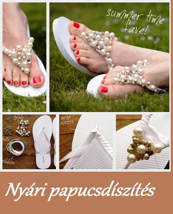 Díszítsük fel egyszerű papucsunkat gyöngyökkel,szalaggal. Mintha újat vettünk volna.|